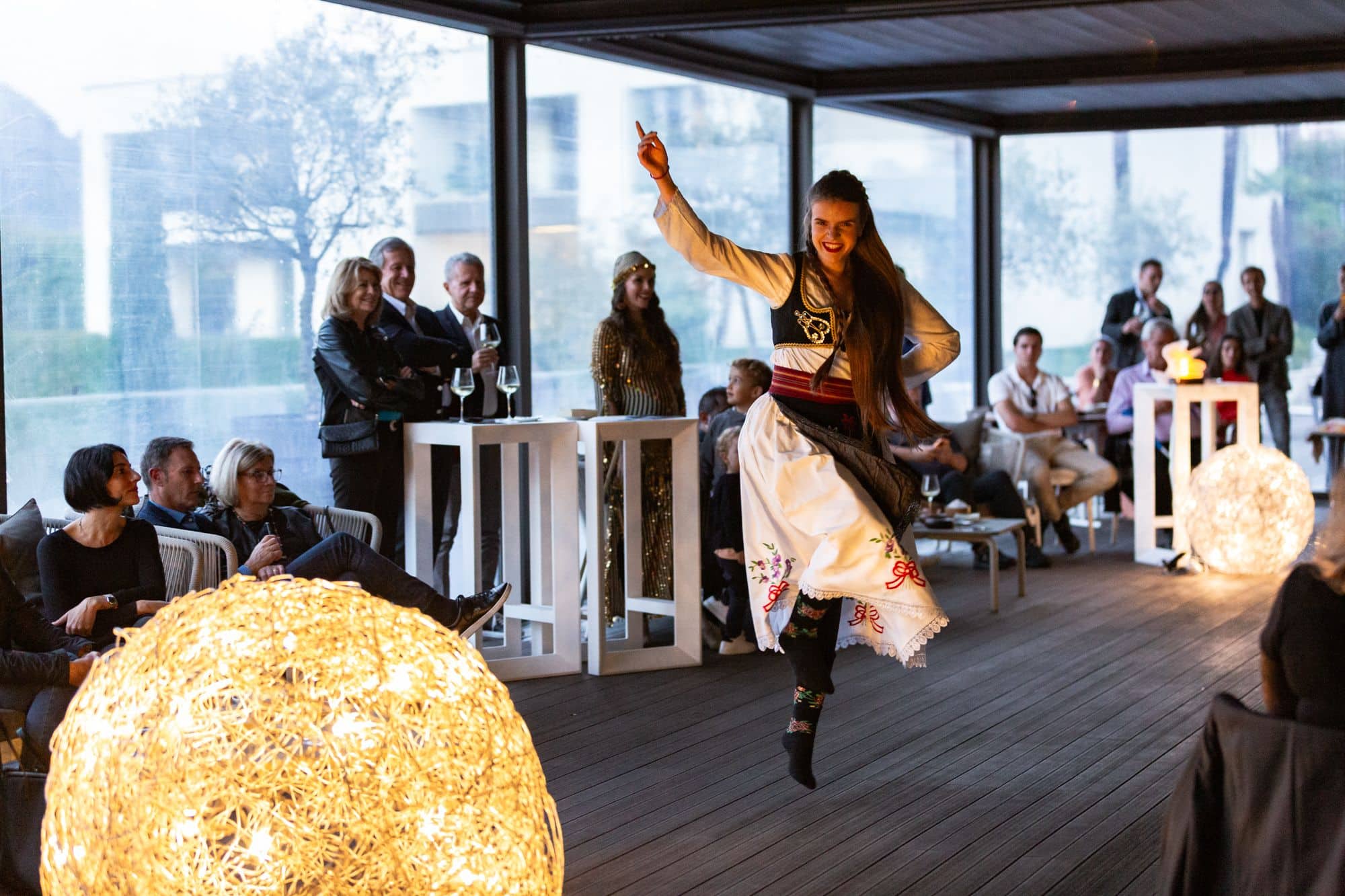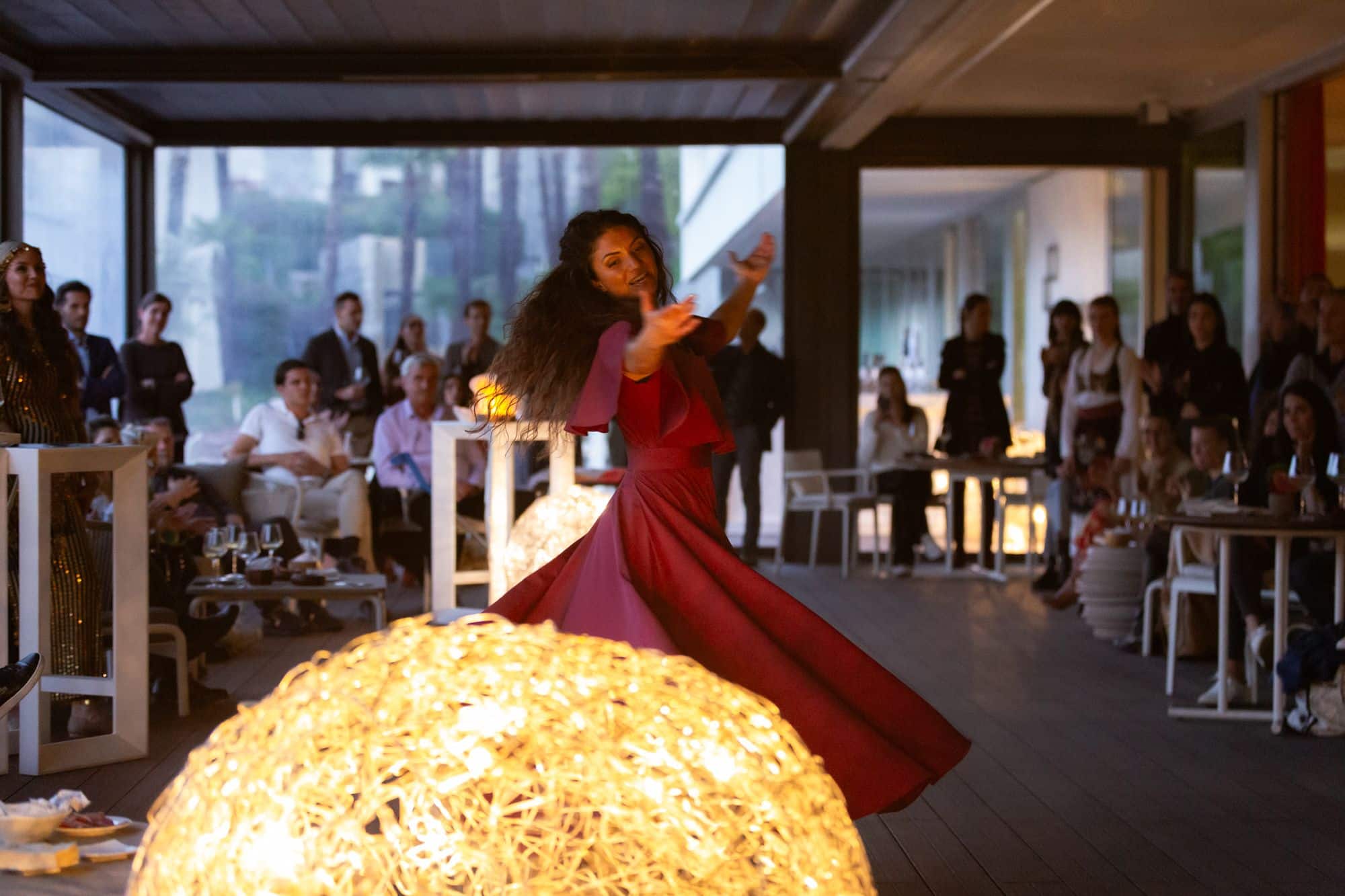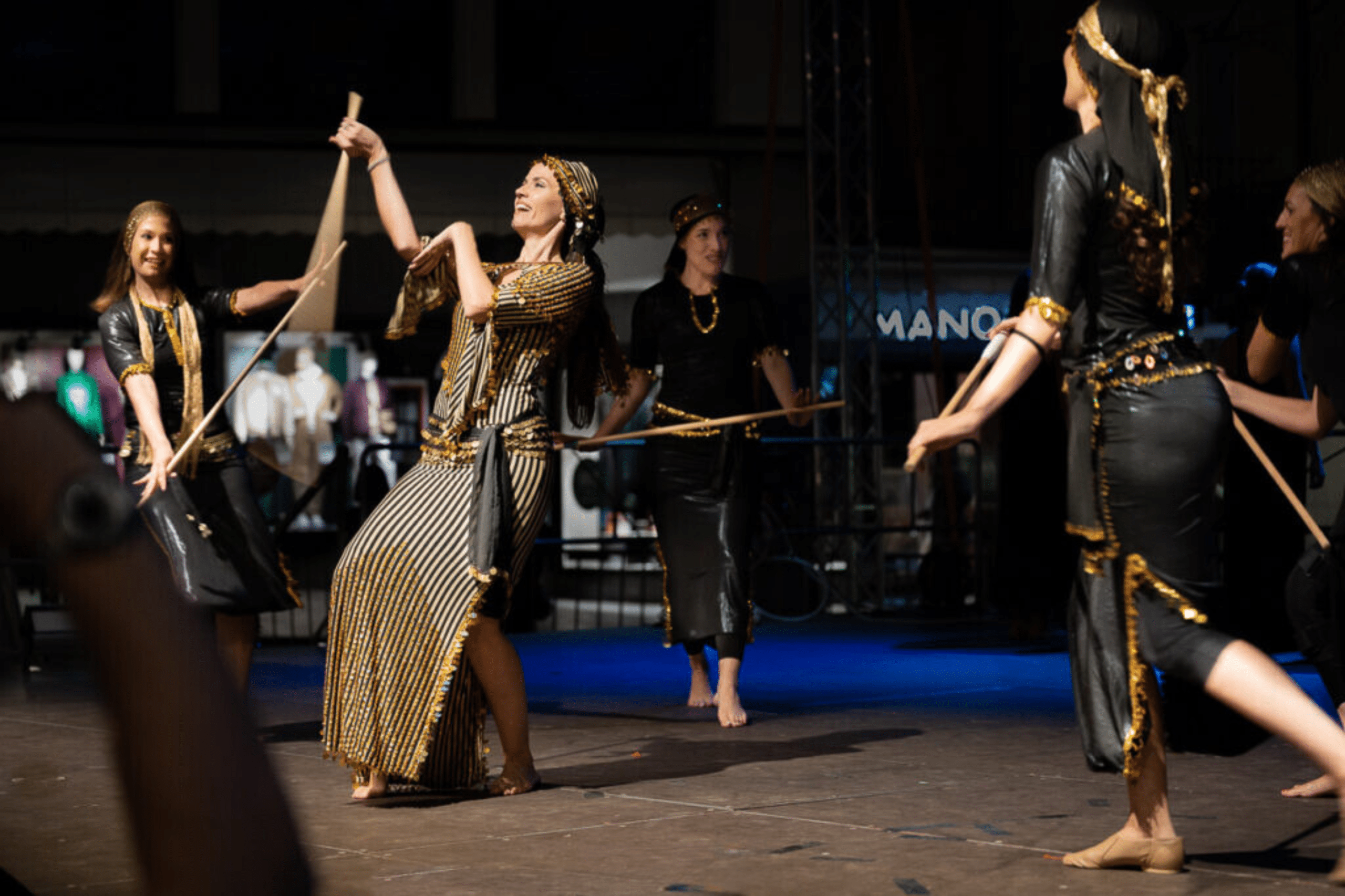 Performance di danza popolare che trasforma il movimento in un'esperienza condivisa, connettendo persone oltre le barriere culturali.