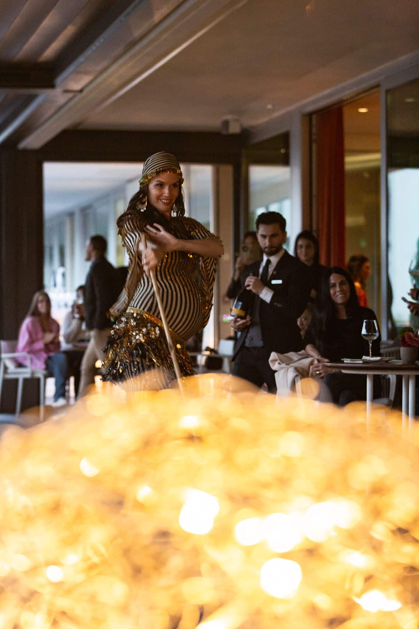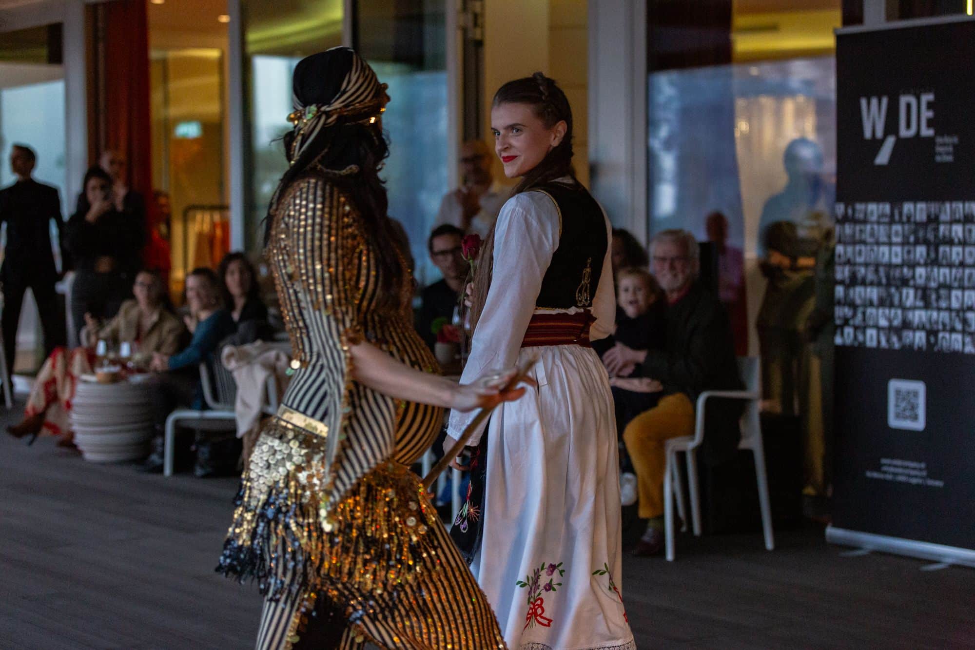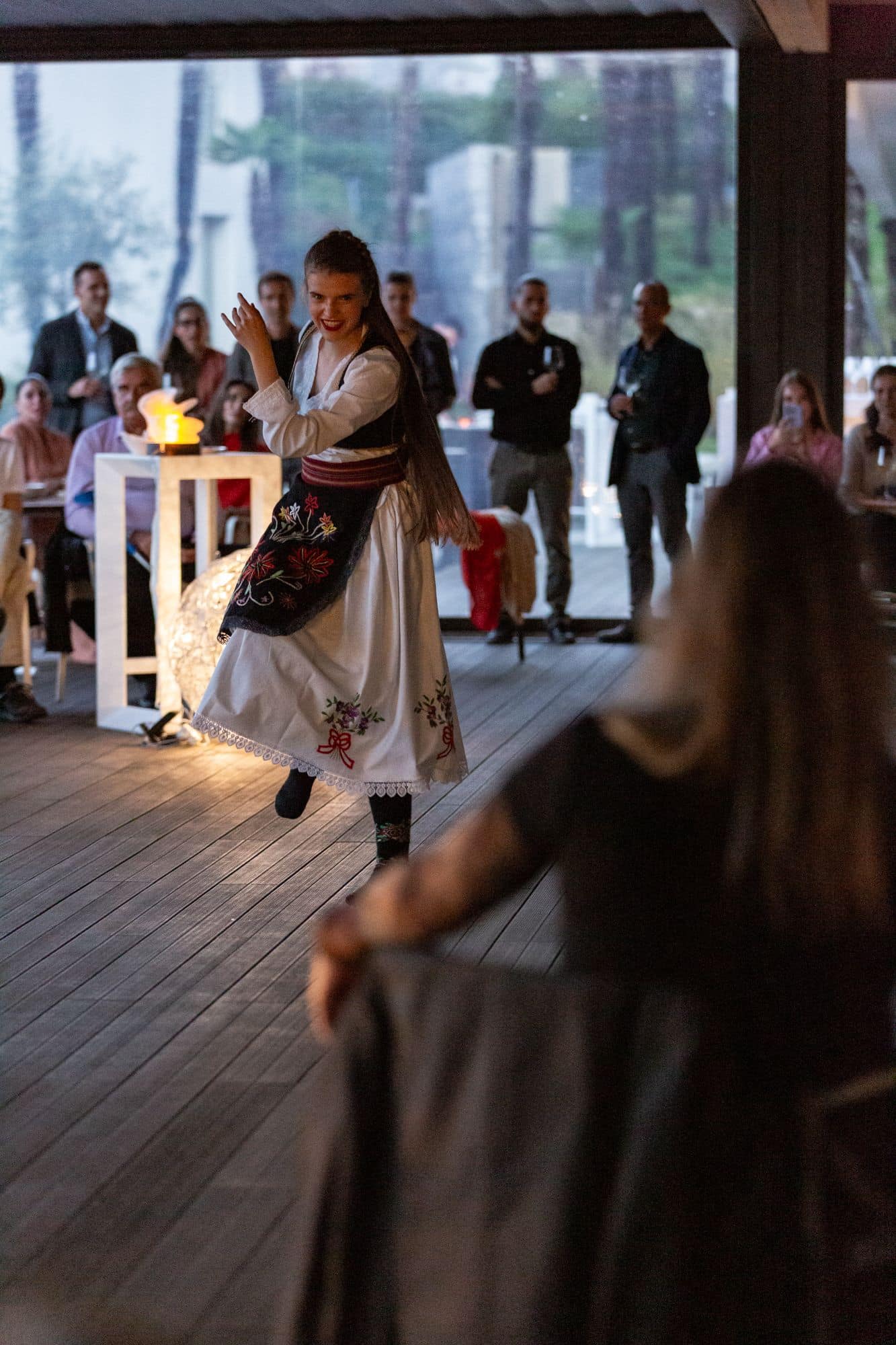 Performance di danza popolare che trasforma il movimento in un'esperienza condivisa, connettendo persone oltre le barriere culturali.
